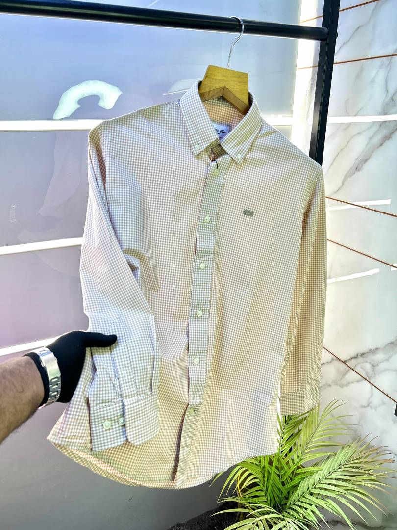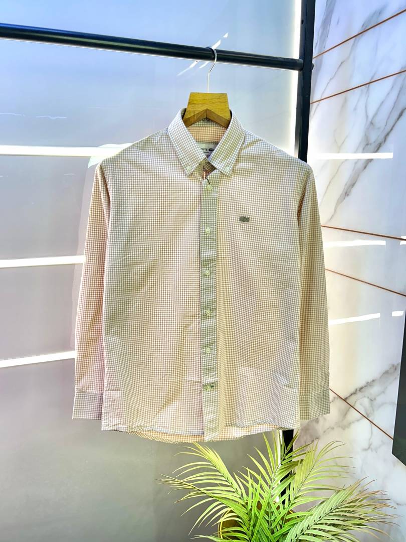 Lacost e Beige Oxford Lycra Premium Checks Shirts F2706-BE