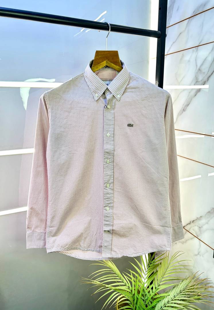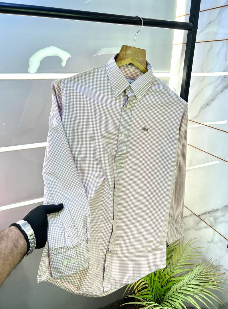 Lacost e Beige Oxford Lycra Premium Checks Shirts F2706-BE