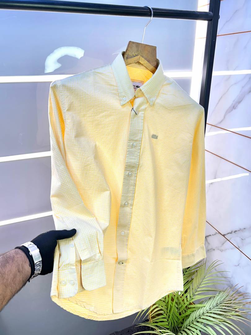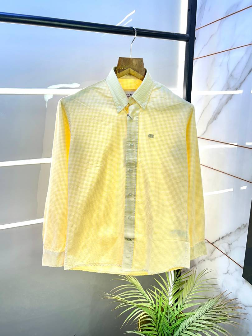 Lacost e Yellow Oxford Lycra Premium Checks Shirts F2706-YE